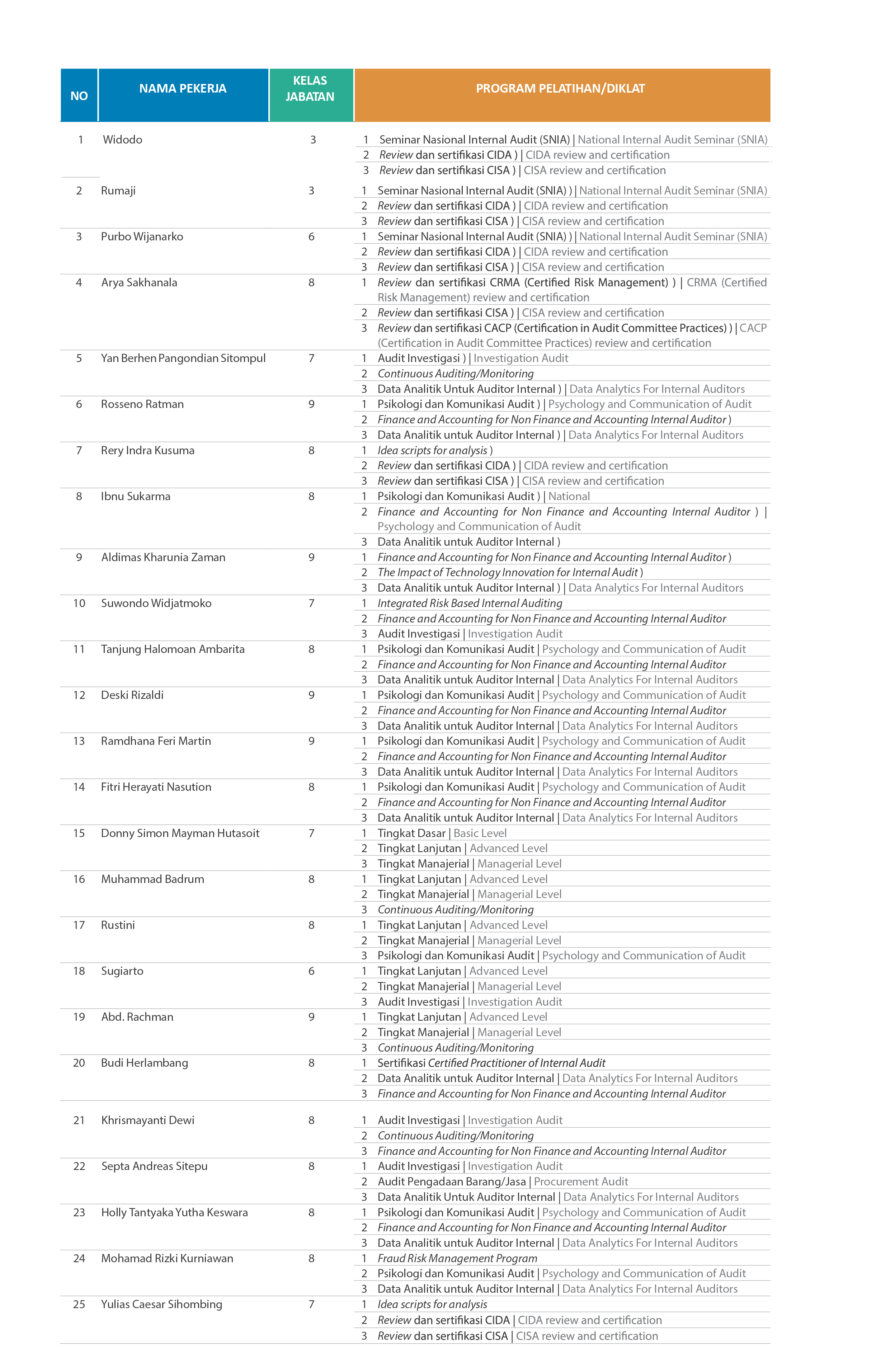 i. Jenis informasi yang dapat/tidak dapat disebarkan kepada pegawai internal perusahaan; dan